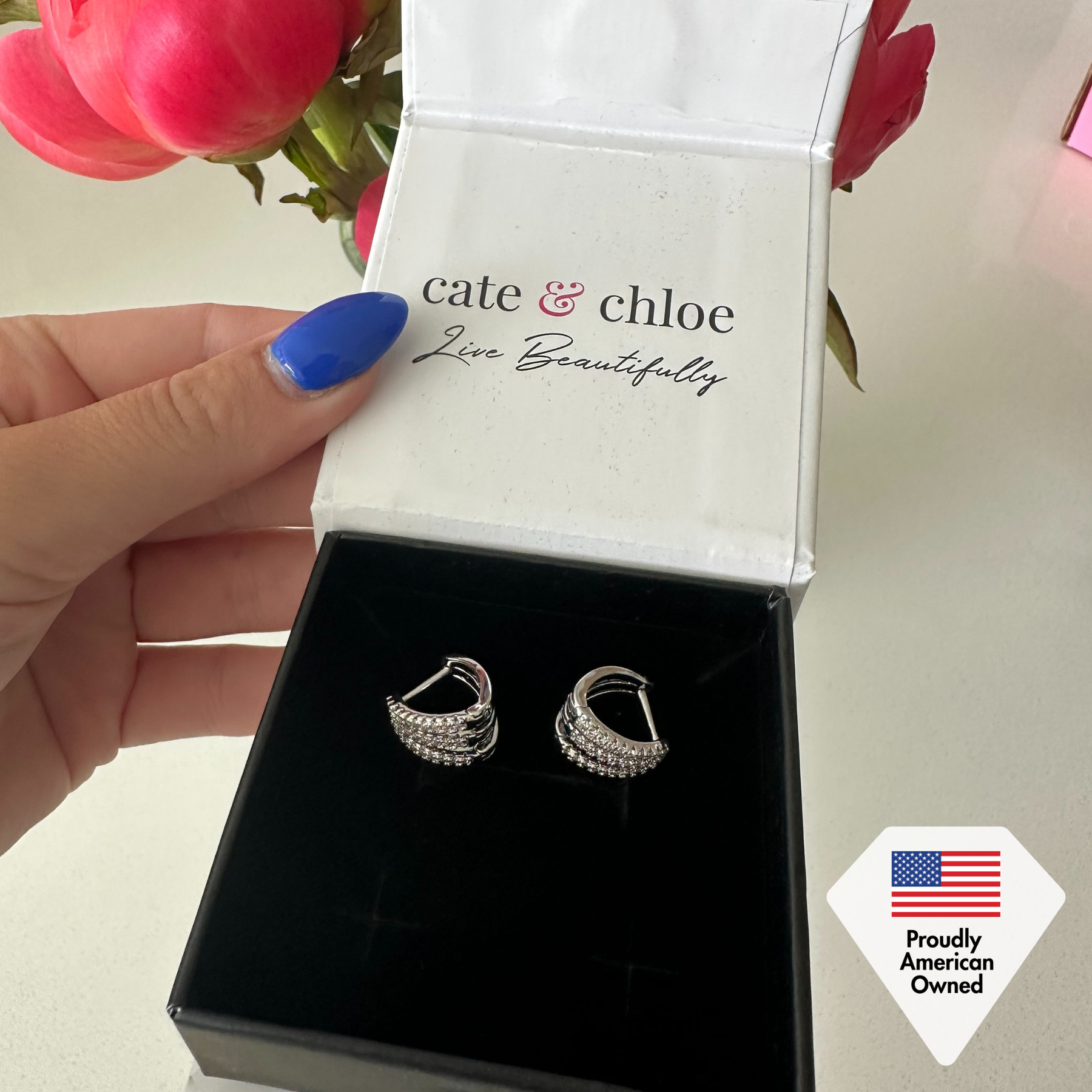 Embrace effortless sophistication with the Aliyah 18k White Gold Plated 14mm Hoop Earrings, designed to bring polished elegance to any look. Expertly crafted from hypoallergenic brass and finished with radiant 18k white gold plating, these classic hoops feature brilliant simulated diamond Swarovski® crystals that deliver a luxurious, eye-catching sparkle. Their lightweight 14mm design ensures comfortable all-day wear, making them a perfect blend of timeless style and modern refinement. Presented in a signature Cate & Chloe gift box, the Aliyah earrings make a thoughtful, stylish gift—or a luminous addition to your own jewelry collection.