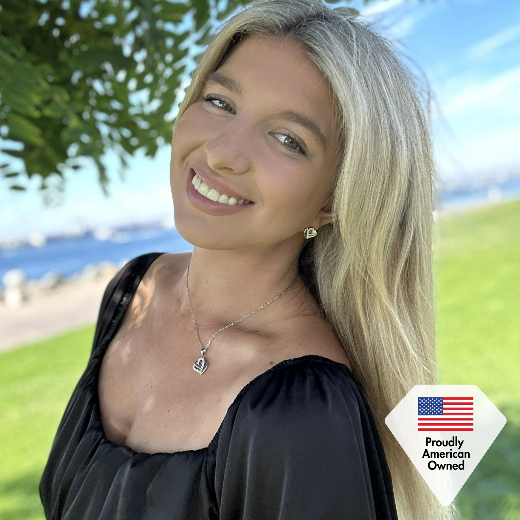 Introducing our Angela 18k White Gold Plated Silver Double Heart Stud Earrings, a timeless blend of elegance and sophistication. These silver earrings boast a dazzling array of Swarovski® Crystals, capturing the essence of classic earrings with a modern twist.