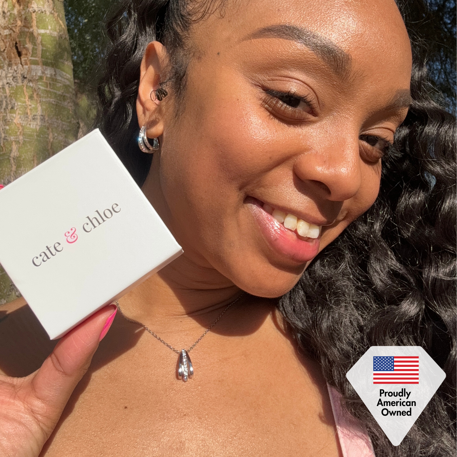 Embrace effortless sophistication with the Bella 18k White Gold Plated Necklace, designed to bring timeless elegance and refined sparkle to any look. Crafted from hypoallergenic brass and finished in radiant 18k white gold plating, this stunning necklace features a beautifully cut pendant adorned with shimmering Swarovski® crystals for a luminous, eye-catching glow. The adjustable chain ensures a comfortable and versatile fit, perfect for both everyday wear and special occasions. Presented in a signature Cate & Chloe gift box, the Bella necklace makes a thoughtful, stylish gift—or a stunning addition to your own jewelry collection.