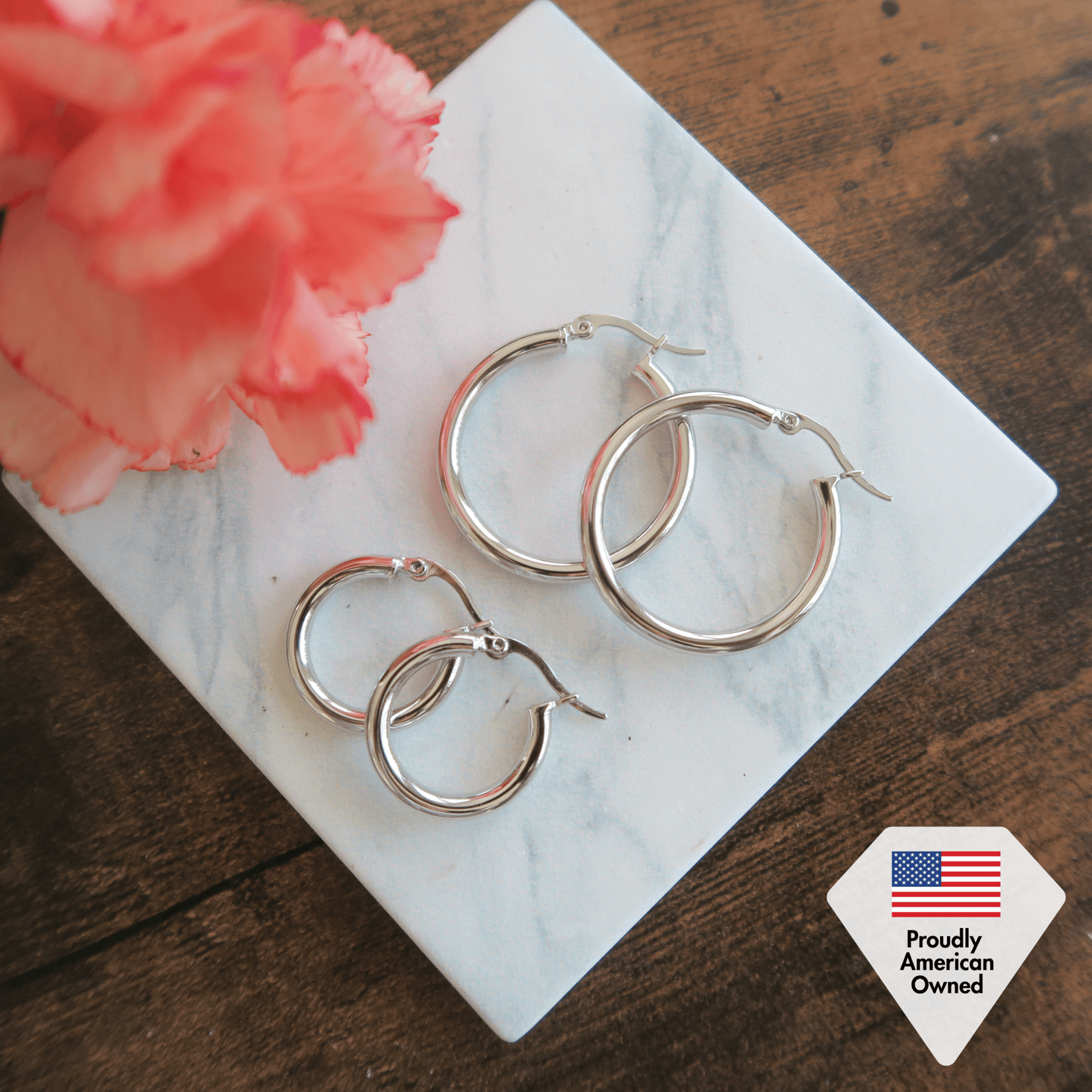 Amy 18k White Gold Plated 20/30mm Hoop Earrings (2 Pair Set)