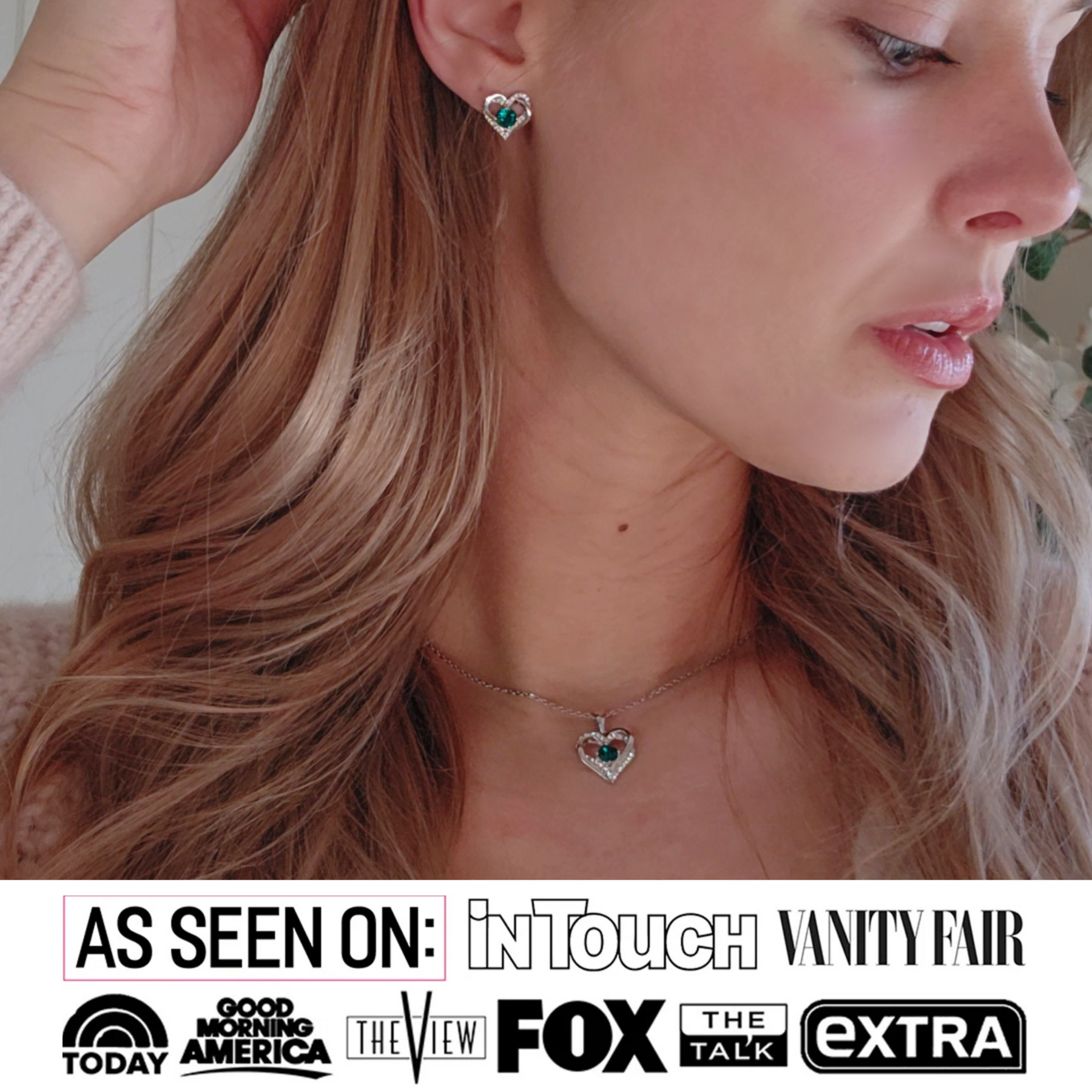 Introducing the Cate & Chloe Forever 18k White Gold Plated Birthstone Set, the perfect jewelry piece to add to your collection! These double heart-shaped earrings and necklace are beautifully crafted with 28 sparkling crystals, creating a stunning and eye-catching piece of crystal jewelry that will make you feel confident and stylish.