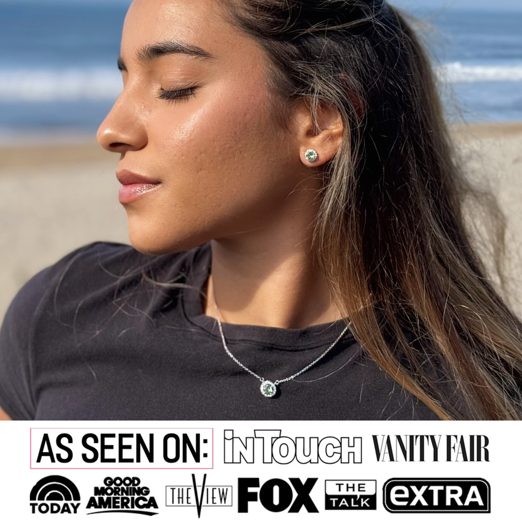 Introducing our Royal 18k White Gold Plated Birthstone Set —a dazzling symphony of elegance and craftsmanship. Adorned with a 5.27mm round cut Swarovski crystal as the focal point, accompanied by 18 accent stones, the halo stud earrings exude grace and sophistication.