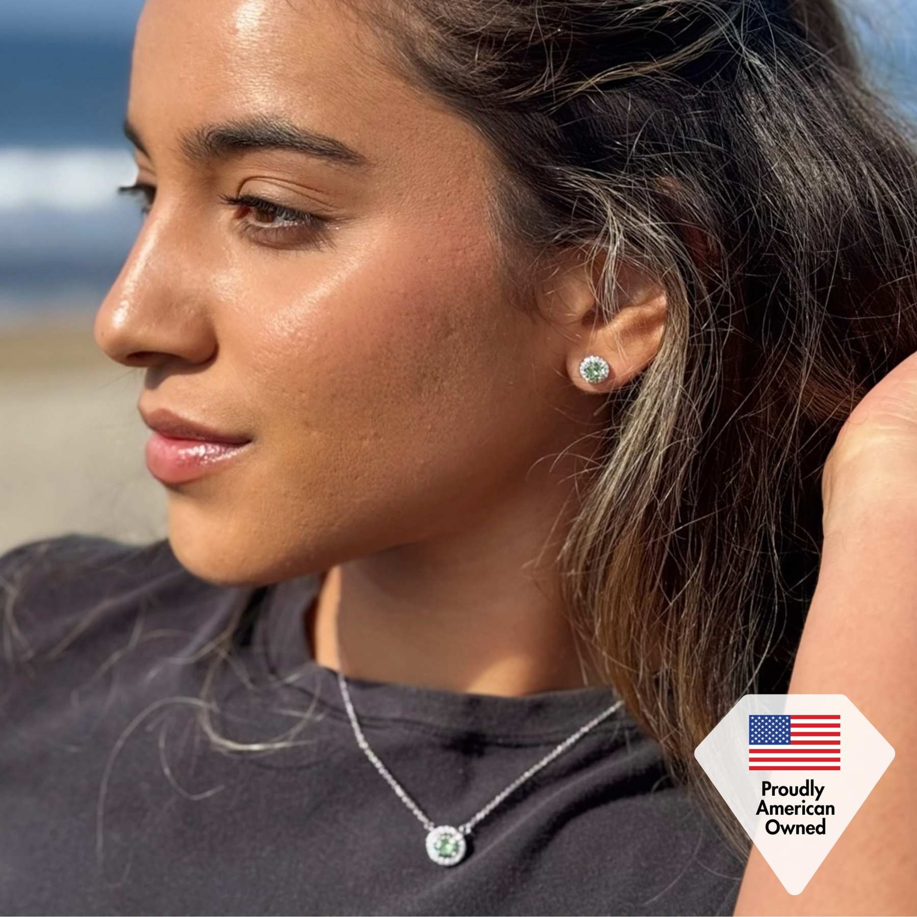 Royal 18k White Gold Plated Birthstone Halo Earrings and Necklace Set with Swarovski Crystals