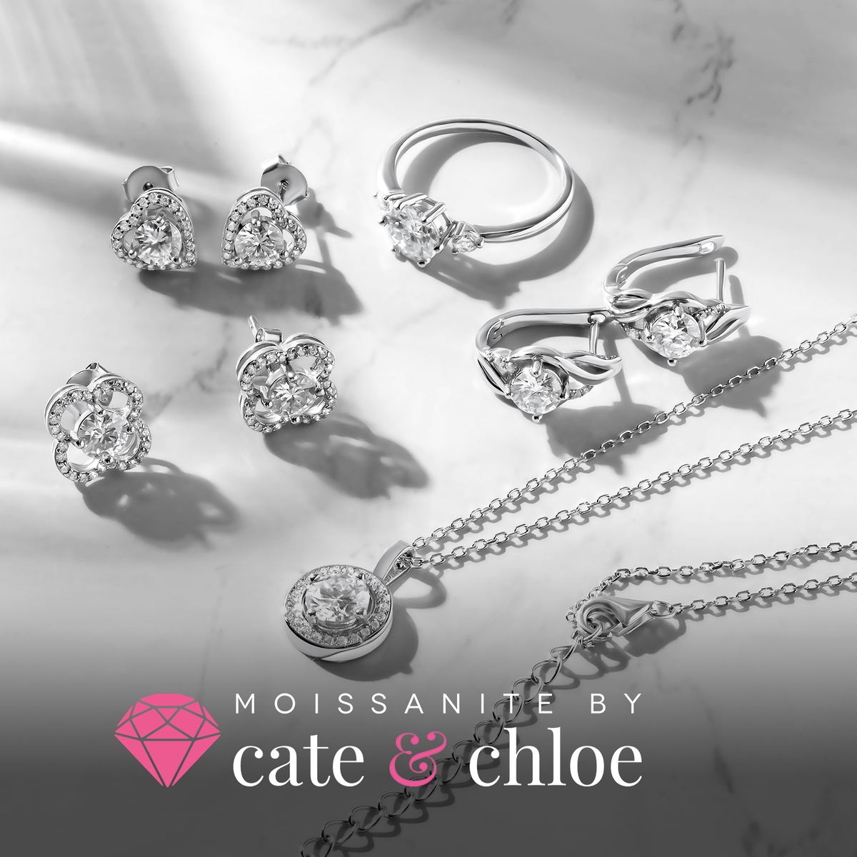 Moissanite by Cate & Chloe Sarah Sterling Silver Rings