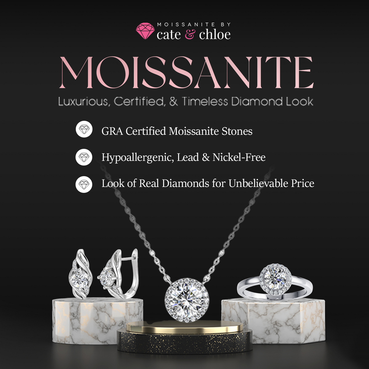 • Comes with GRA Moissanite Certification and Warranty ID Card