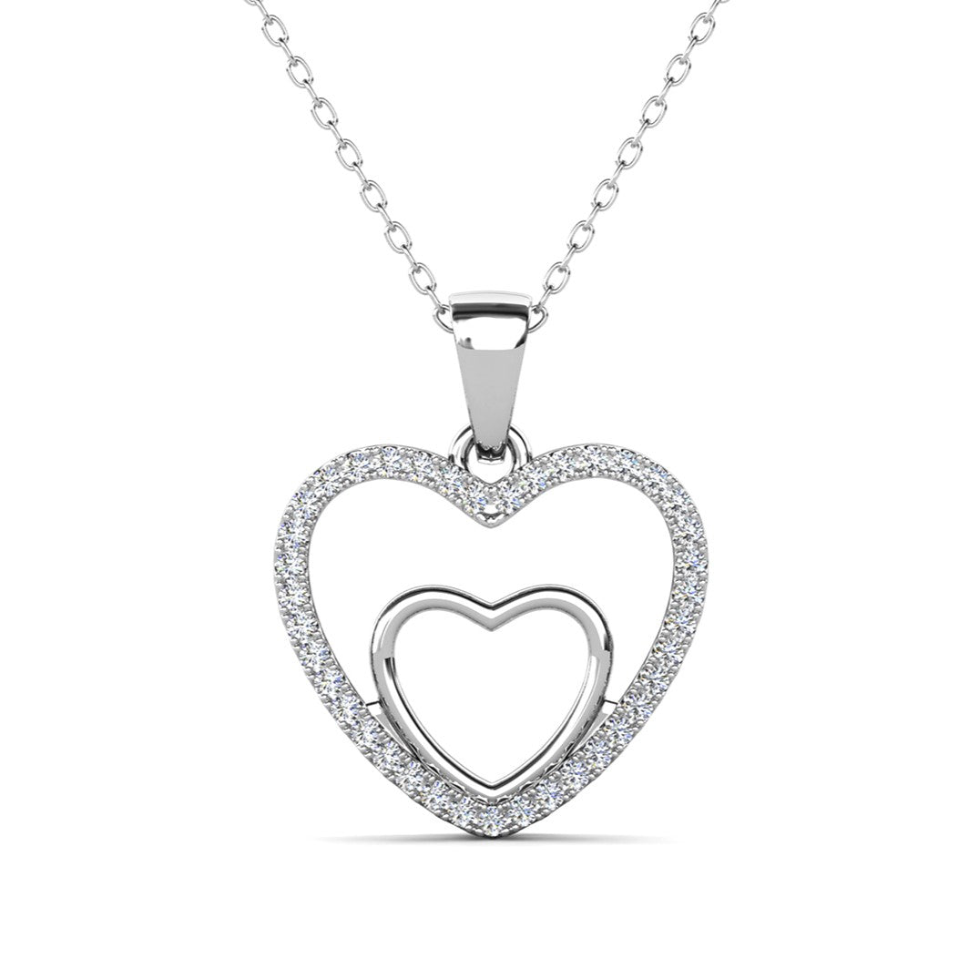 Amorette 18k White Gold Plated Double Heart Pendant Necklace with Pave Simulated Diamond Crystals