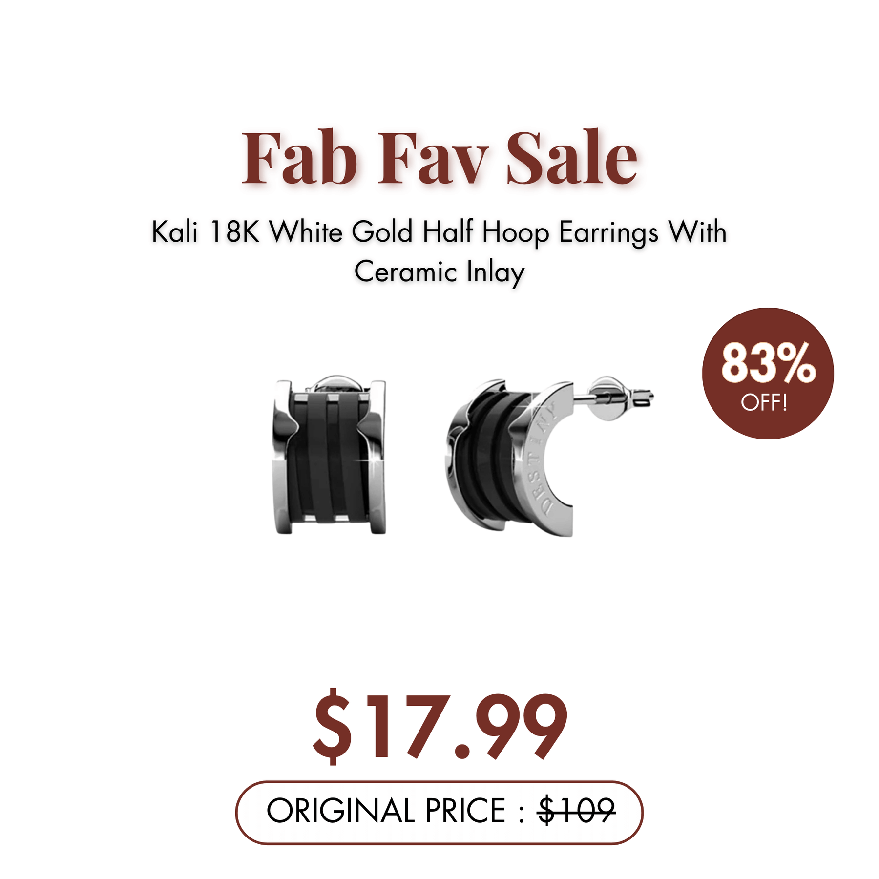 Kali 18K White Gold Half Hoop Earrings With Ceramic Inlay — Fab Fav Sale