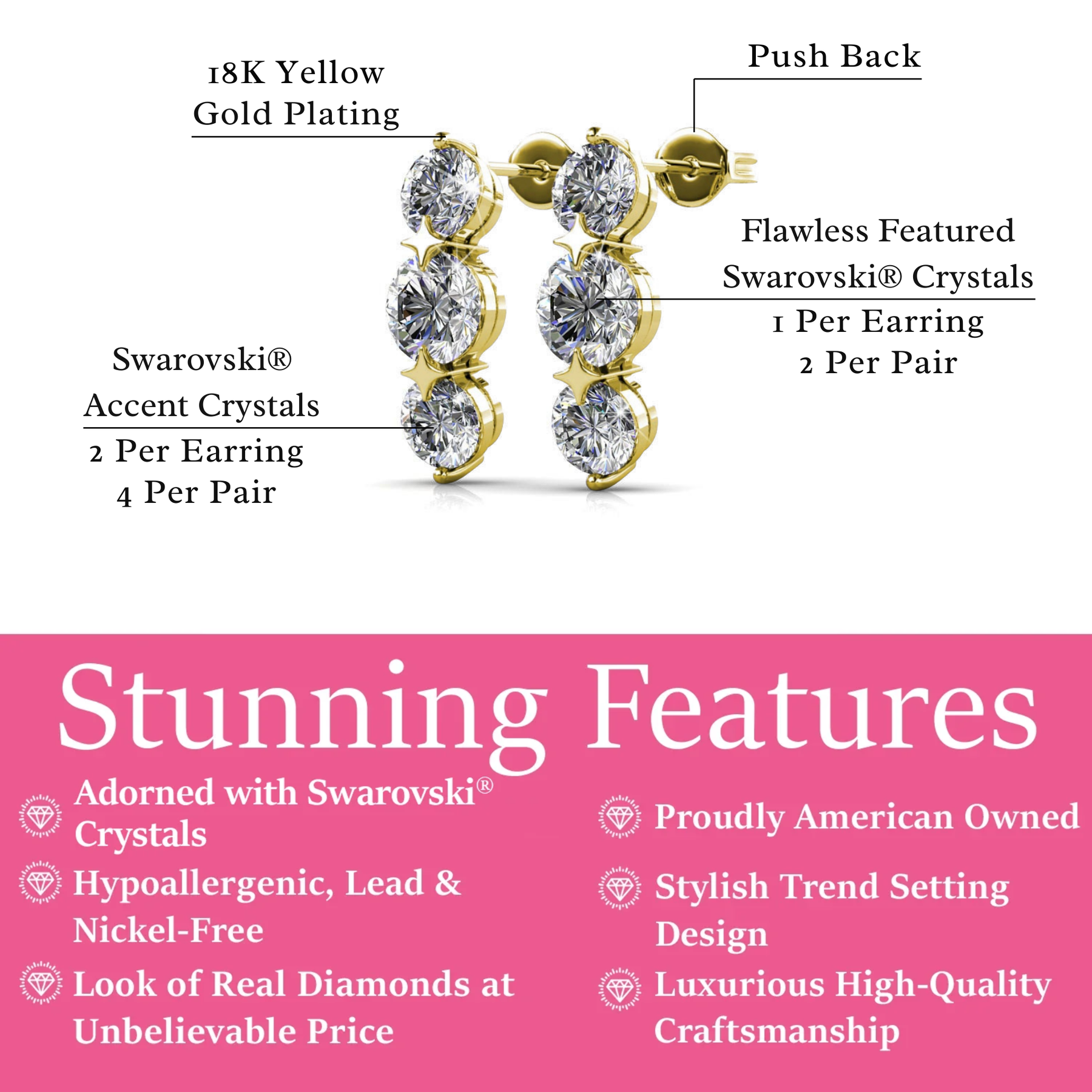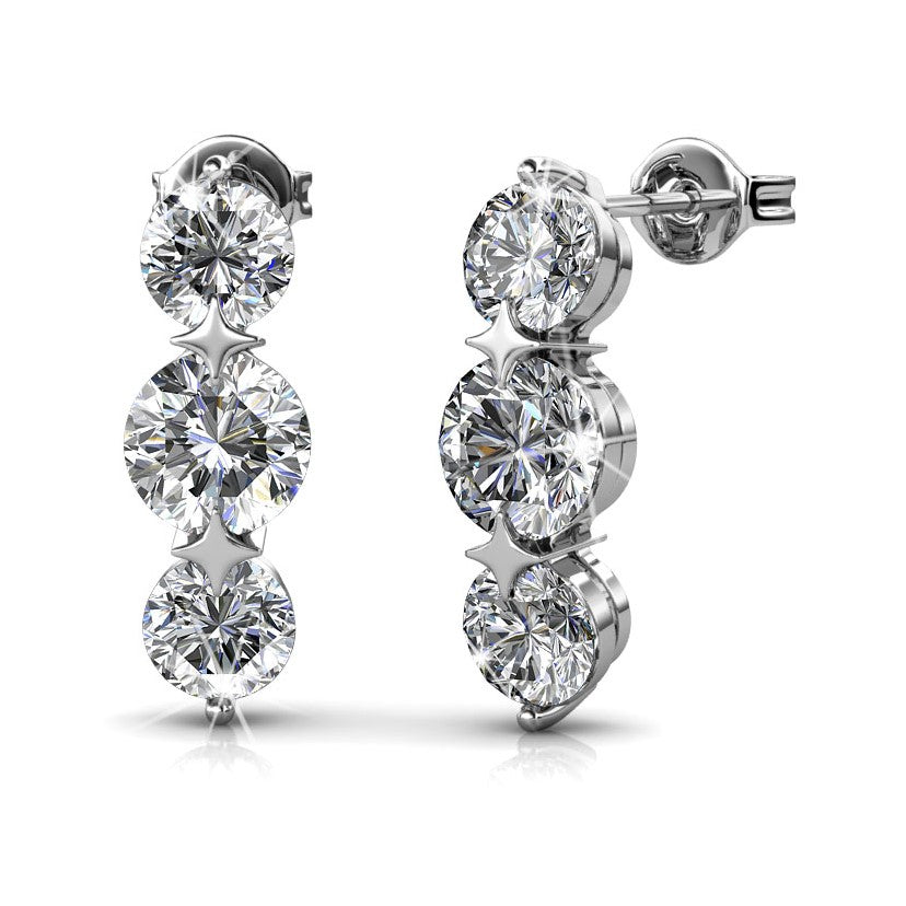 Lucille 18k White Gold Plated Stud Drop Earrings with Swarovski Crystals