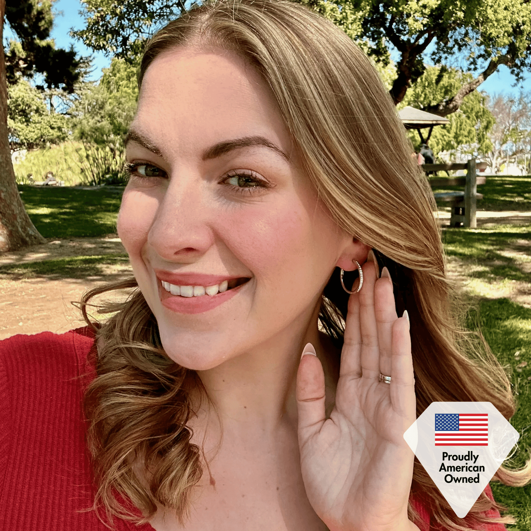 Indulge in effortless elegance with the Pack of 2 Bianca and Leslie Hoop Earrings. Expertly crafted from hypoallergenic brass and finished with a luxurious 18k white gold plating, this versatile duo offers the perfect balance of modern flair and timeless sophistication. Each pair is adorned with shimmering Swarovski® crystals, delivering an eye-catching sparkle that elevates both everyday outfits and special-occasion looks. Featuring a secure click-top clasp for comfortable, all-day wear, these hoops come beautifully packaged in a premium Cate & Chloe gift box, making them a stunning treat for yourself or a thoughtful gift for someone special.