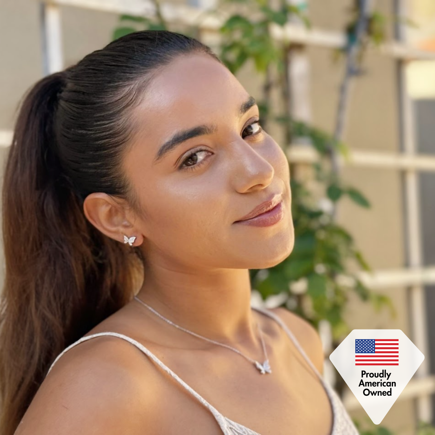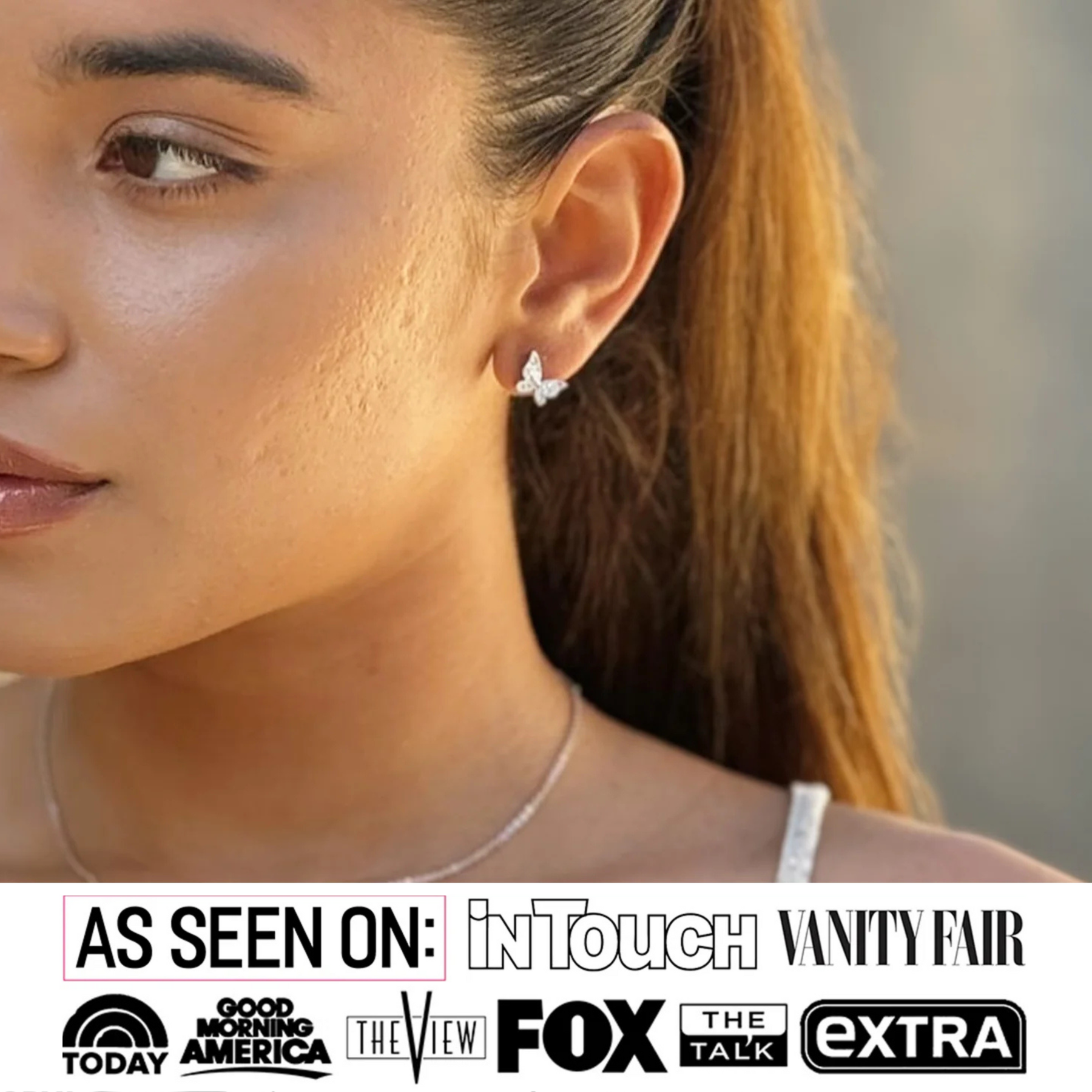 Introducing our Yuenen 18k White Gold Plated Silver Butterfly Earrings, a timeless blend of elegance and sophistication. These silver earrings boast a dazzling array of Swarovski Crystals, capturing the essence of classic earrings with a modern twist.