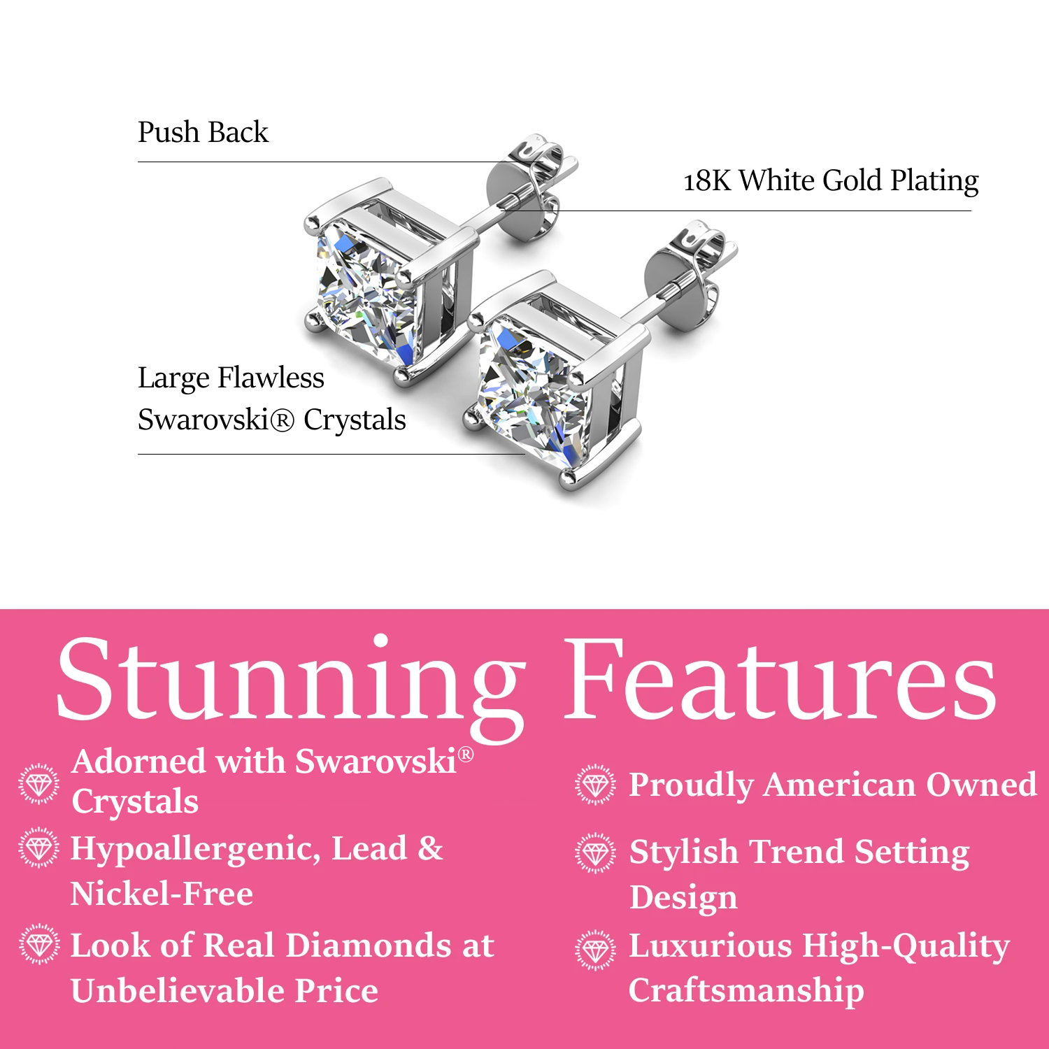 Brooke 18k White Gold Plated Stud Earrings with Princess Cut Swarovski Crystals