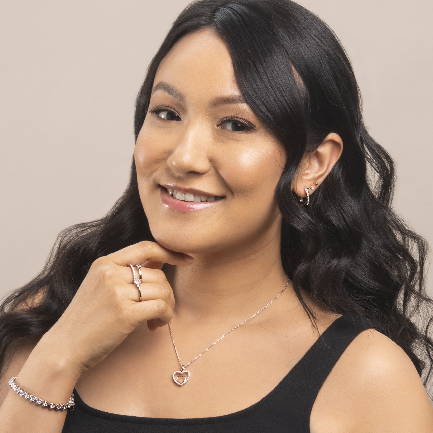Our rhodium plated pendant necklace is the perfect fashion accessory for any woman! This heart halo pendant necklace will flatter anyone, with all the beautiful Simulated Diamond Crystals  stones on this pendant, it will be hard for people to ignore.