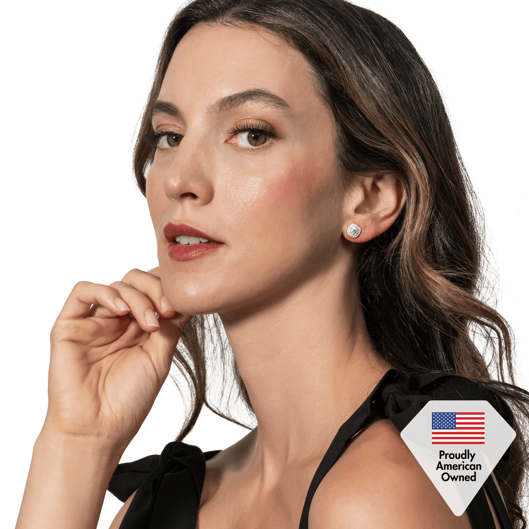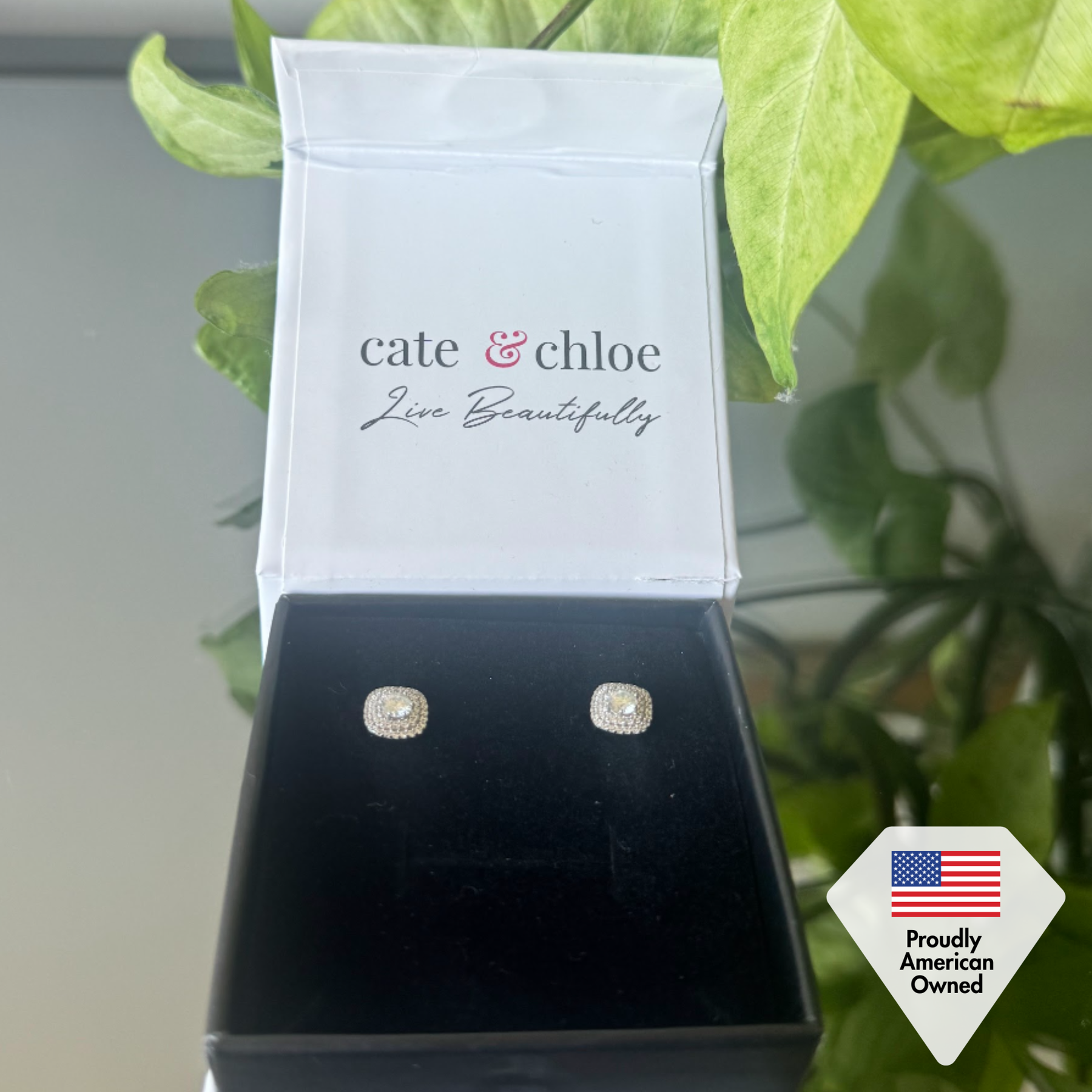 Introducing the Cate & Chloe Signature Collection — Lucy Sterling Silver Stud Earrings, perfect for any fashion-conscious woman. Made with high-quality materials, these earrings are crafted from sterling silver and 18k white gold plating, ensuring durability and longevity. The stones used in these earrings are Moissanite crystals, offering a brilliant sparkle that will catch everyone's eye. The round-cut crystals are carefully positioned in a classic design, giving the earrings a timeless elegance that can be paired with any outfit.