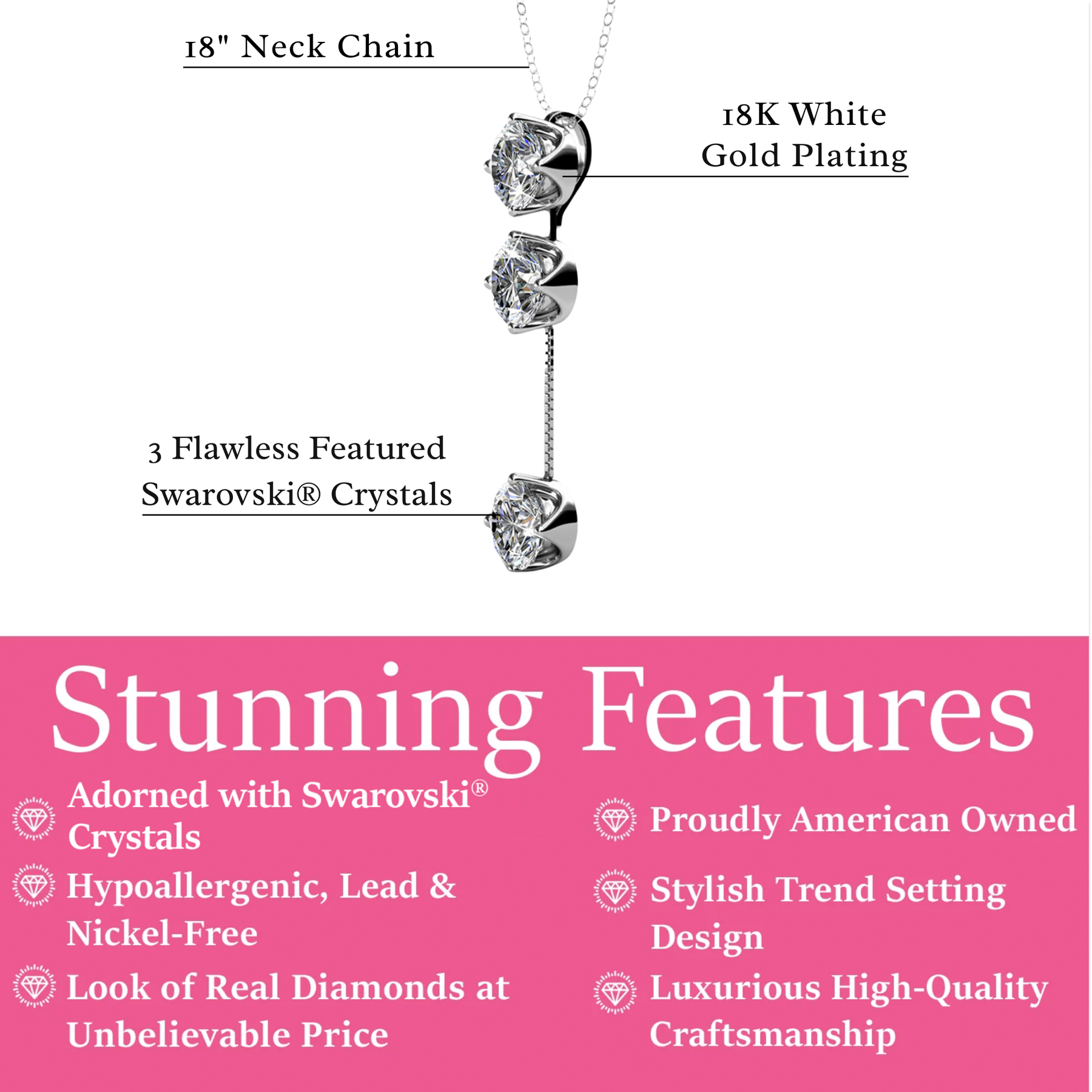 Sloane 18k White Gold Plated Drop Necklace with Swarovski Crystals