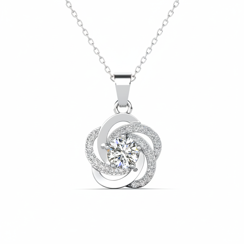 Elevate your style with the Stella Pendant Necklace. This exquisite piece features a stunning spiral design adorned with shimmering simulated diamond crystals. With 1 featured crystal and 44 accent stones, it exudes timeless elegance. The 18k white gold plating adds a touch of luxury, and the push-back closure ensures a secure fit.