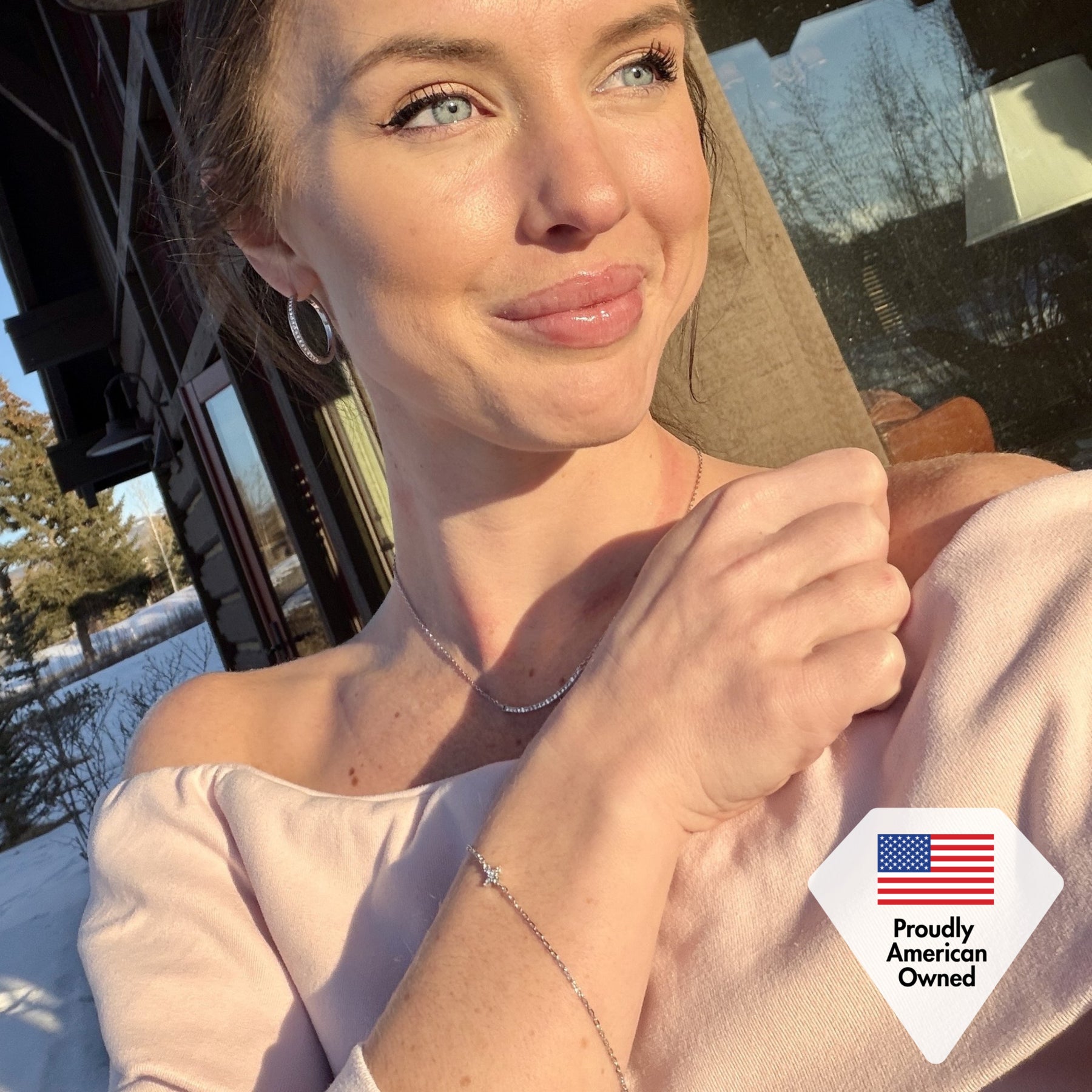 Expertly plated in 18k white gold, the bracelet offers a luxurious finish that complements all skin tones. The adjustable chain ensures a comfortable and secure fit, making it perfect for daily wear or special occasions. Made from hypoallergenic, lead- and nickel-free materials, it is ideal for sensitive skin.