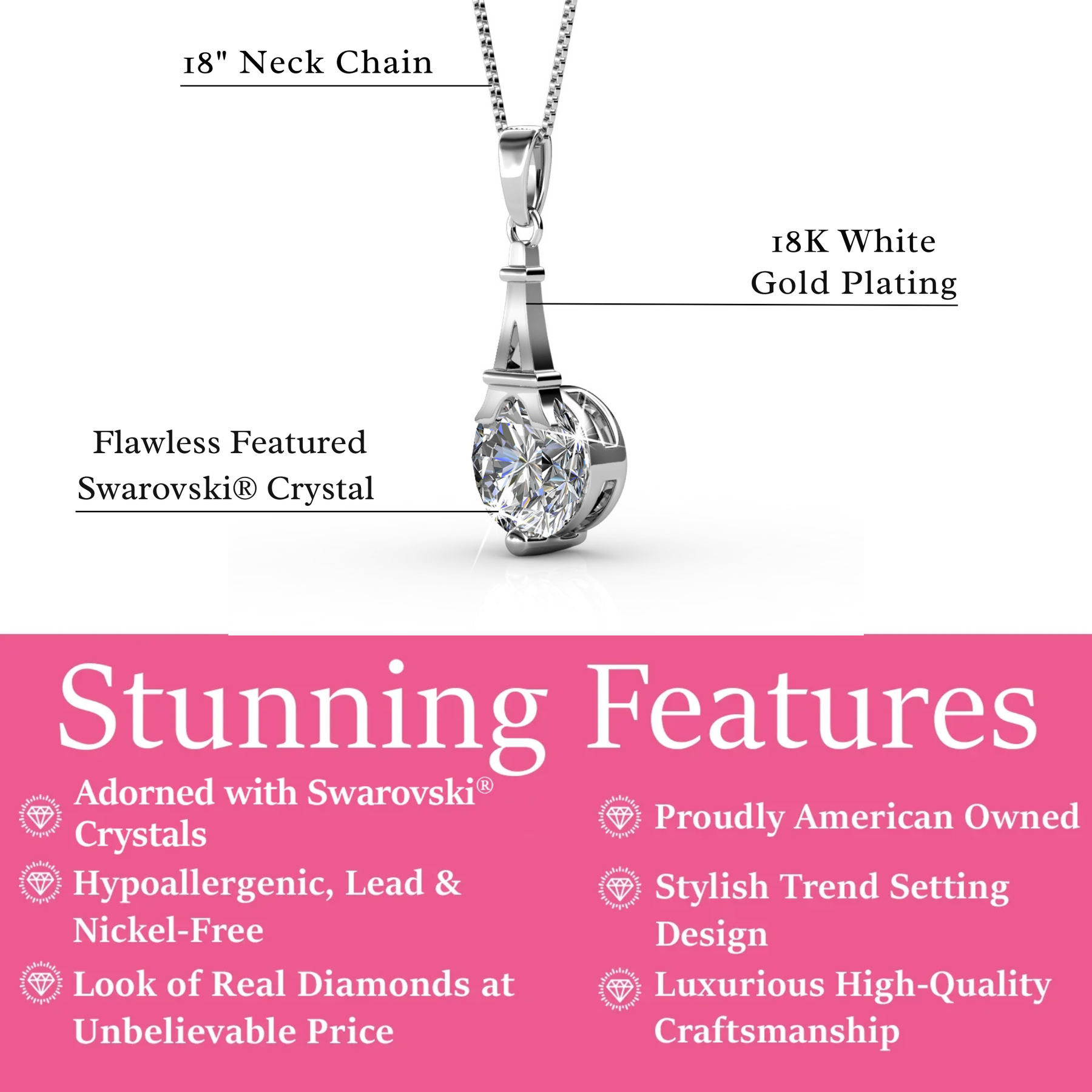 Elevate your style with the Isla Necklace, a stunning piece that embodies elegance and sophistication. Designed for the modern woman, this exquisite necklace features a beautifully crafted Eiffel Tower pendant adorned with a sparkling Swarovski® Crystal, making it the perfect accessory for any occasion. Whether dressing up for a special event or adding a touch of glamour to your everyday attire, the Isla Necklace is a versatile and luxurious addition to your jewelry collection.