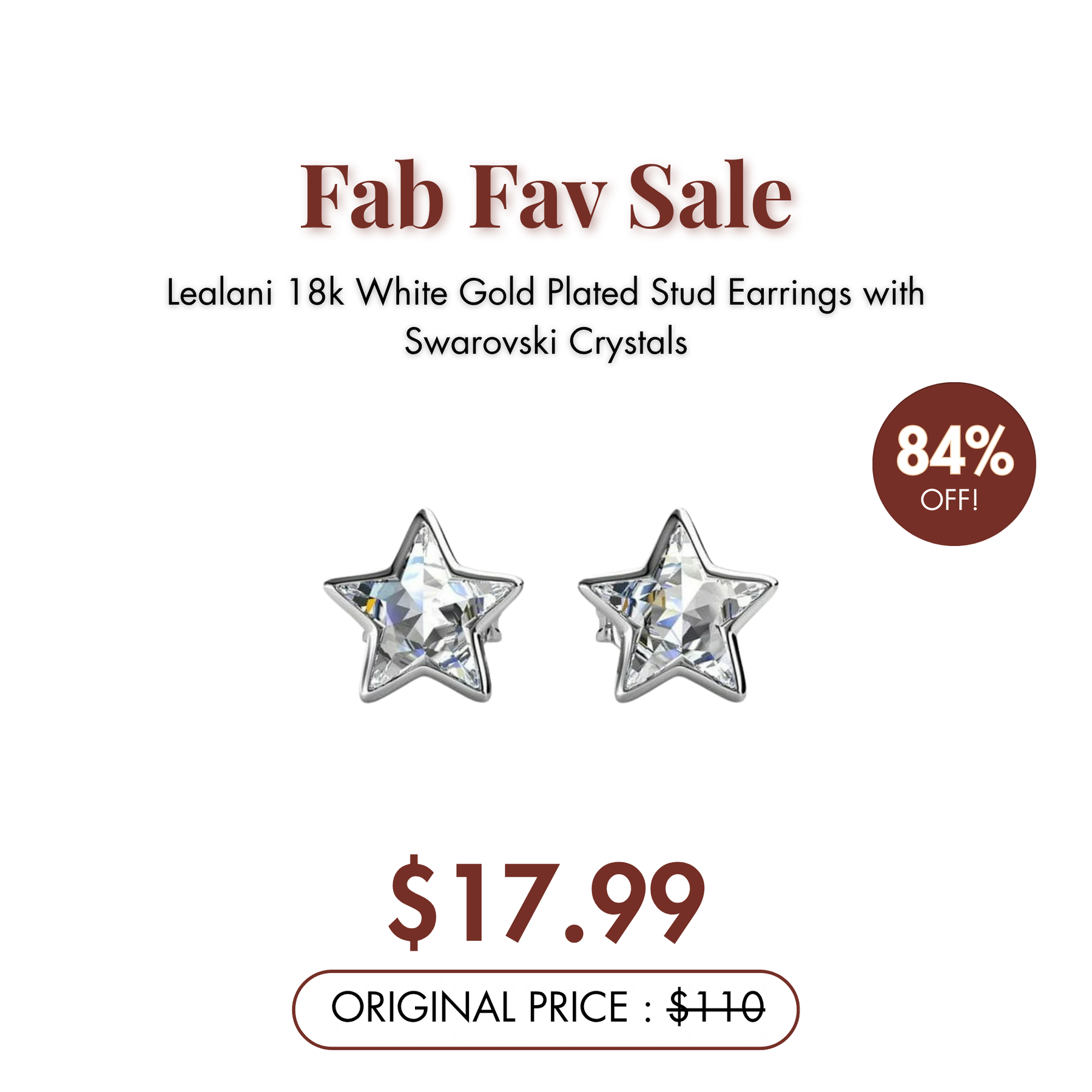 Lealani 18k White Gold Plated Stud Earrings with Swarovski Crystals