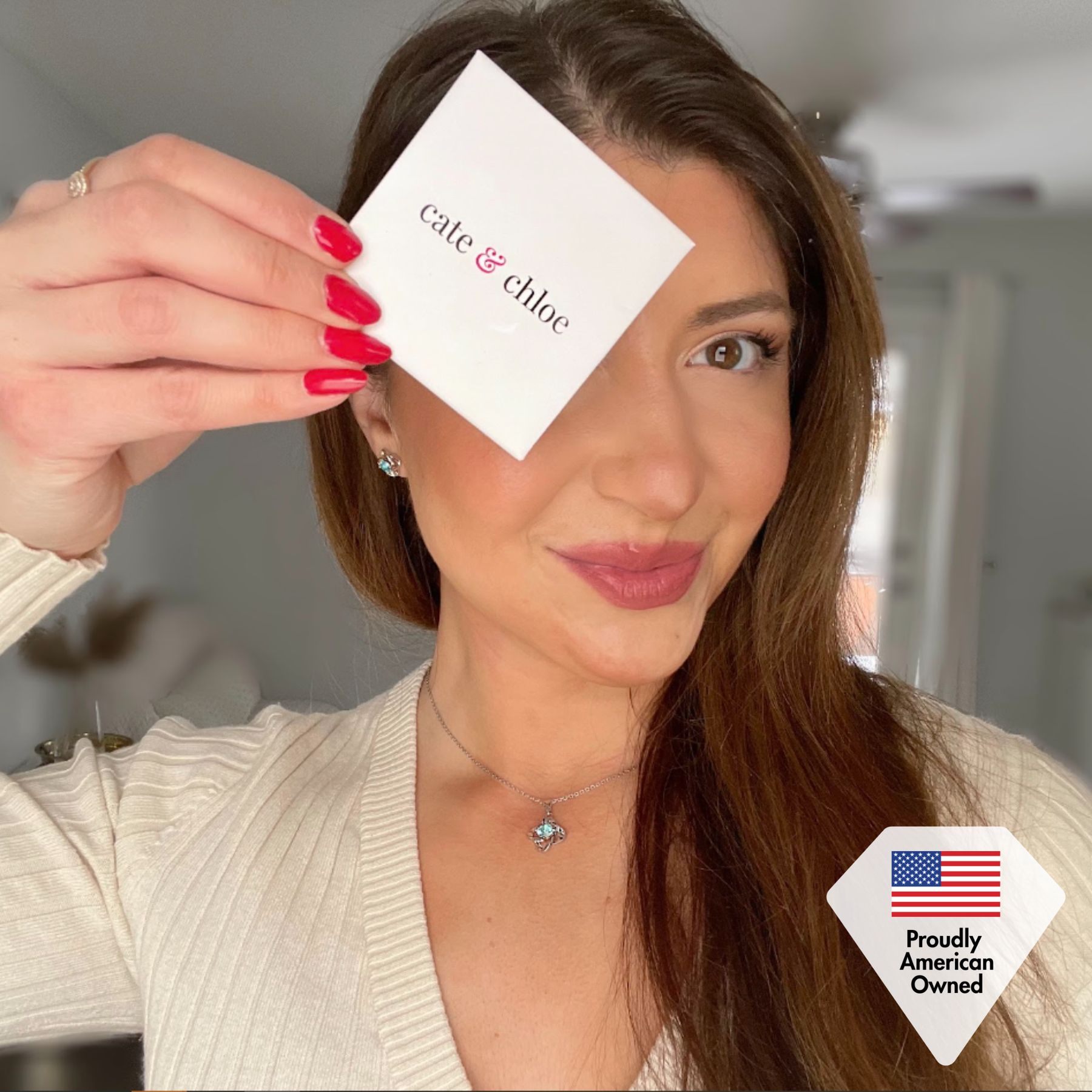 Introducing the Cate & Chloe Infinity 18k White Gold Plated Birthstone Set, the perfect jewelry piece to add to your collection! These earrings and necklace are beautifully crafted with round-cut sparkling crystals, creating a stunning and eye-catching piece of crystal jewelry that will make you feel confident and stylish.