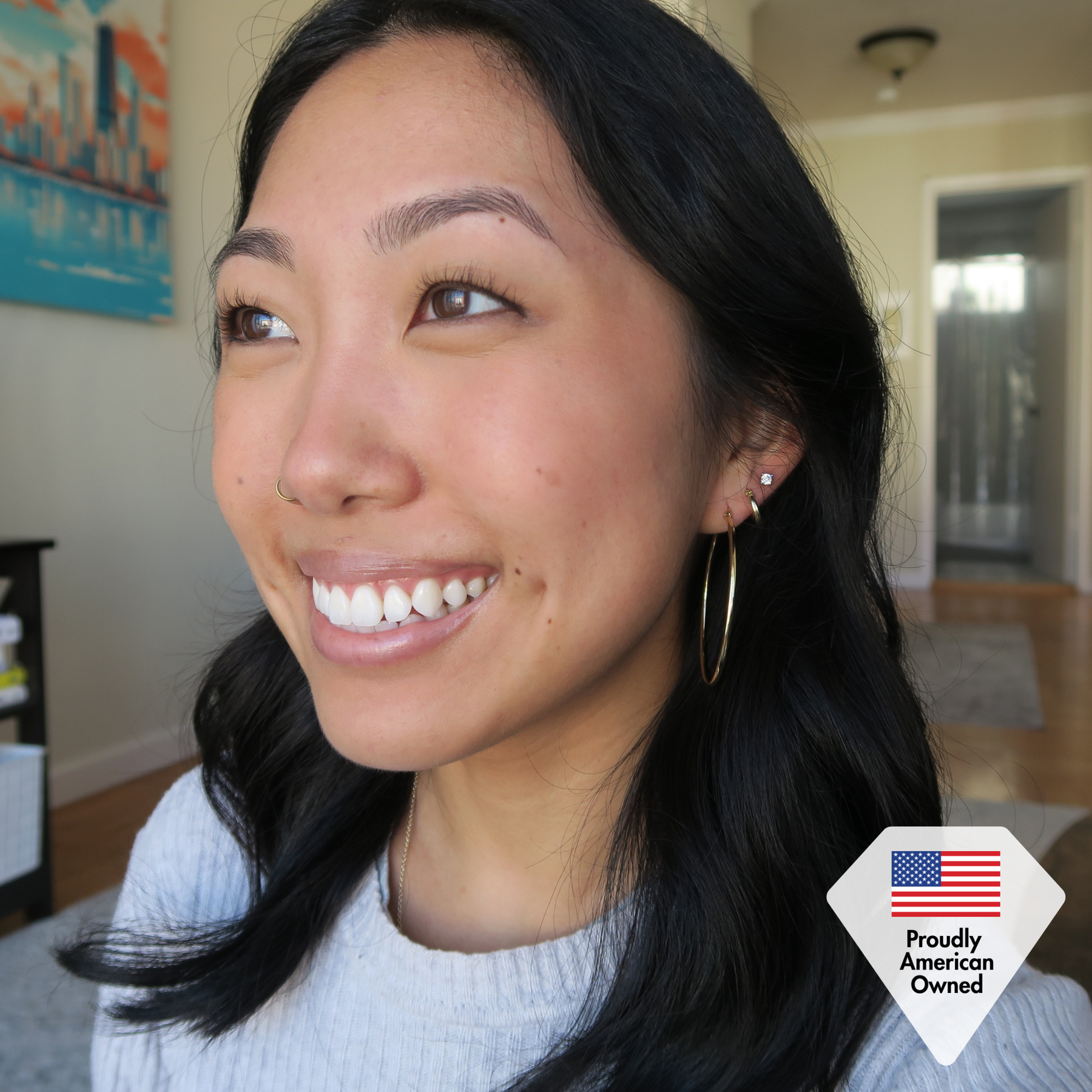 Introducing the Monica Hoop Earrings! These beautiful earrings are plated with 18k Yellow Gold for a lustrous finish. They come in three different sizes, so you can choose the perfect pair for your look. Whether you're dressing up for a special occasion or just accenting your everyday style, these earrings are a perfect addition. They have a hinged back for easy wear and are lead-free and nickel-free, so they're gentle on sensitive skin. Plus, they come in a complimentary gift box, making them an ideal present for that special someone in your life. So don't wait any longer, grab a pair of Monica Hoop Earrings today!