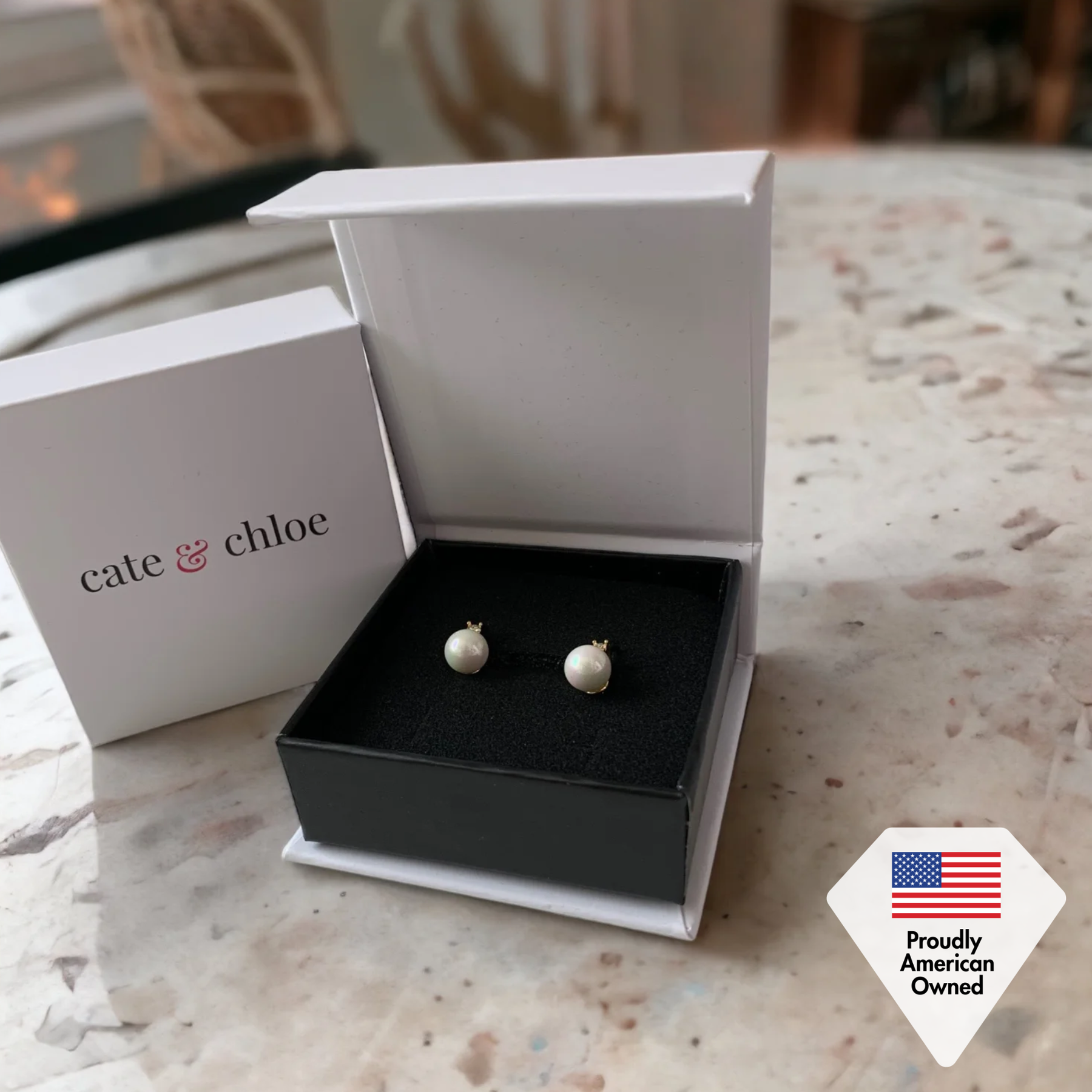 • Stone Size: 8mm Pearls | 2.5mm Accent Stones