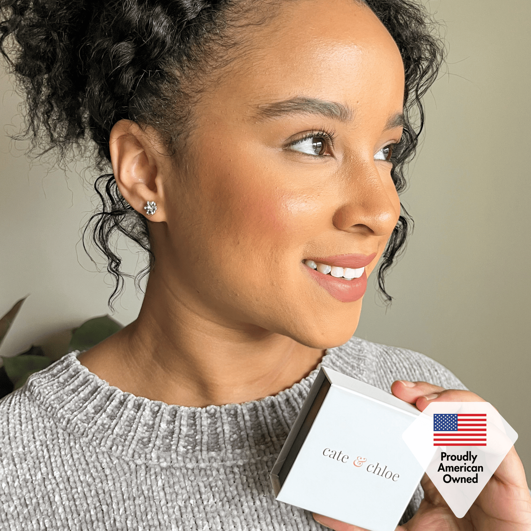 The Millie Jewelry Set combines timeless elegance with radiant sparkle. Featuring matching stud earrings and a delicate necklace, each piece is adorned with brilliant Swarovski® crystals, capturing light and adding a touch of luxury to every outfit. Crafted from hypoallergenic brass and plated with 18k white gold, this set offers both durability and comfort. Perfect for any occasion, the Millie set arrives beautifully packaged in a Cate & Chloe gift box, making it an ideal gift or a refined addition to your personal collection.