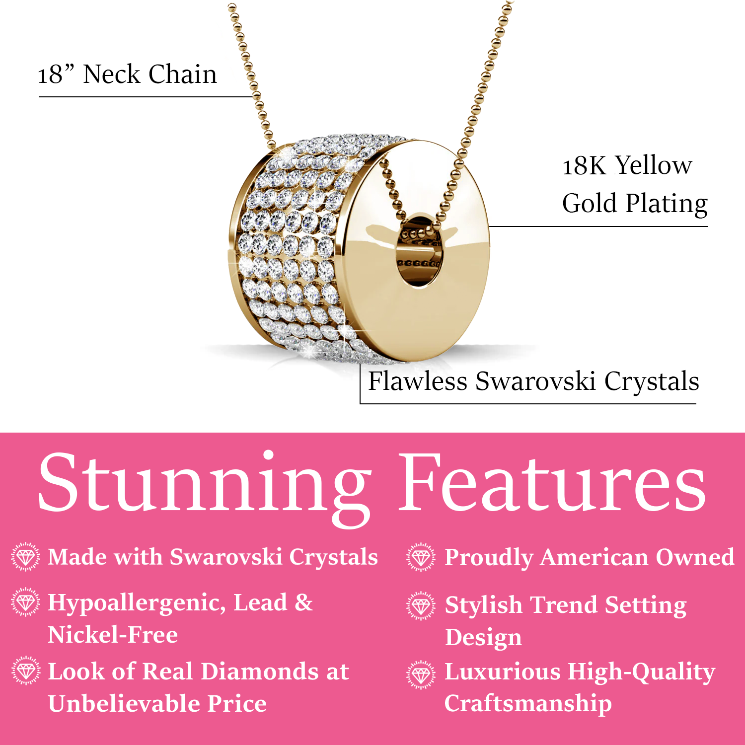Keep the heads turning with the new Anabelle pendant piece! This elegant and alluring necklace is wrapped with endless sparkling Swarovski® stones mounted in an 18k white gold plated design that is sure to catch the eye of everyone in the room when you walk in the door.