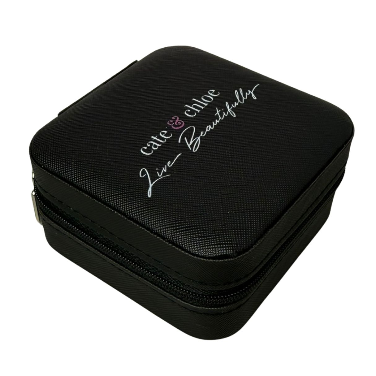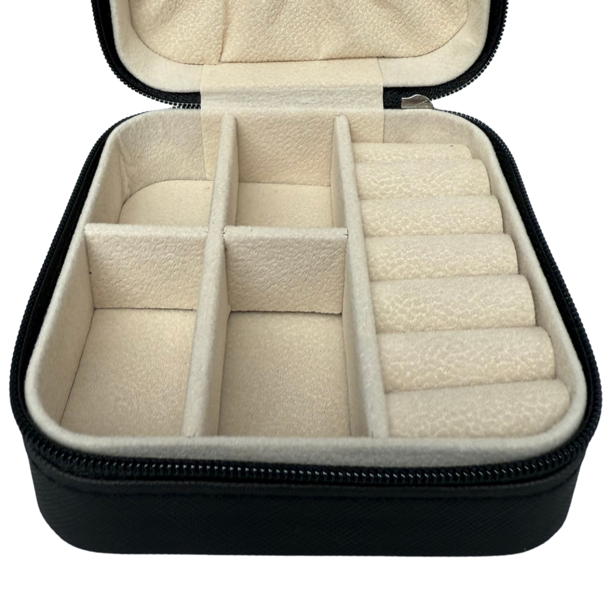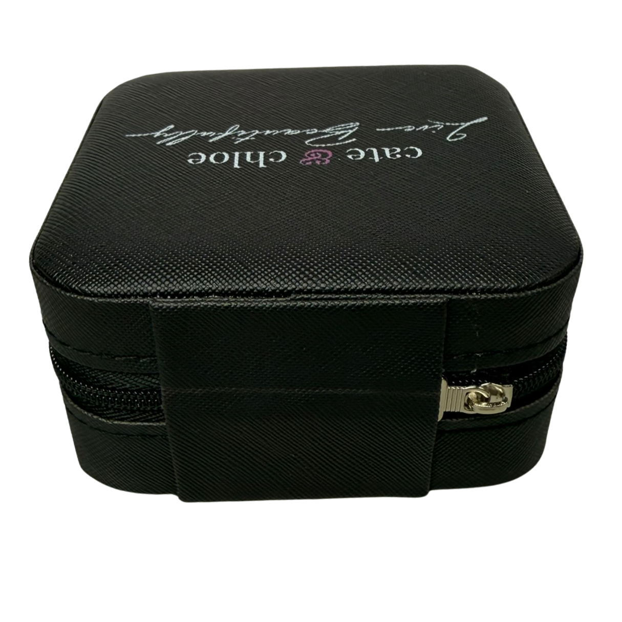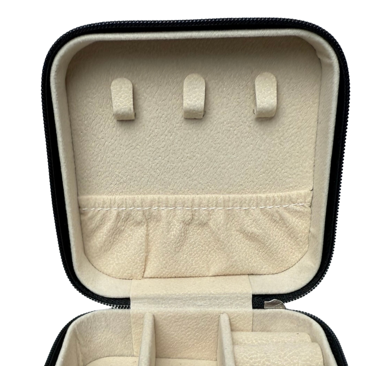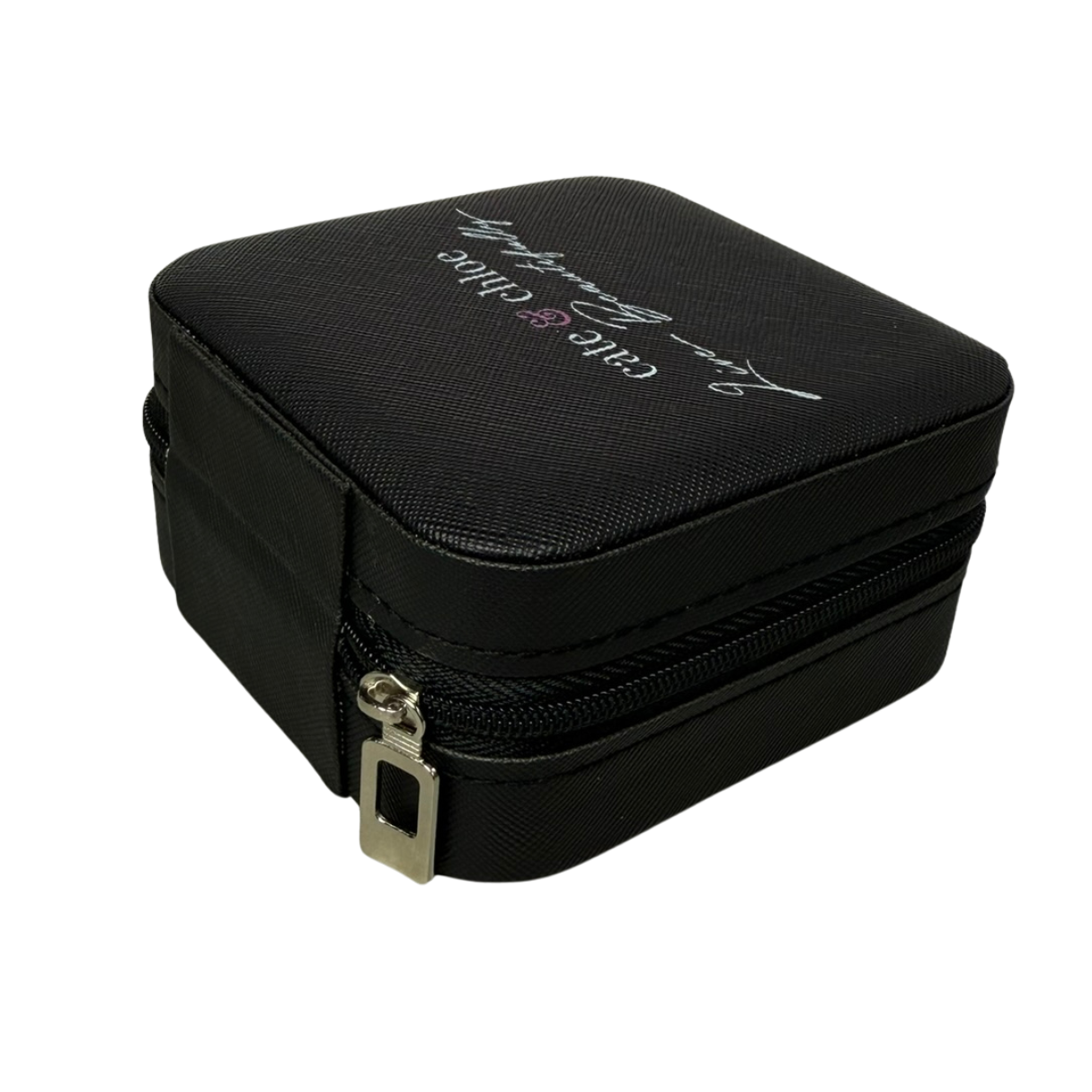 Crafted with sleek black PU leather exterior, the case exudes timeless elegance while offering durable protection for your cherished accessories. Inside, the case reveals a luxuriously soft velvet-lined interior that cushions your jewelry against scratches and damage. The sturdy zipper closure ensures your items stay secure, whether tucked inside your handbag, suitcase, or carry-on.